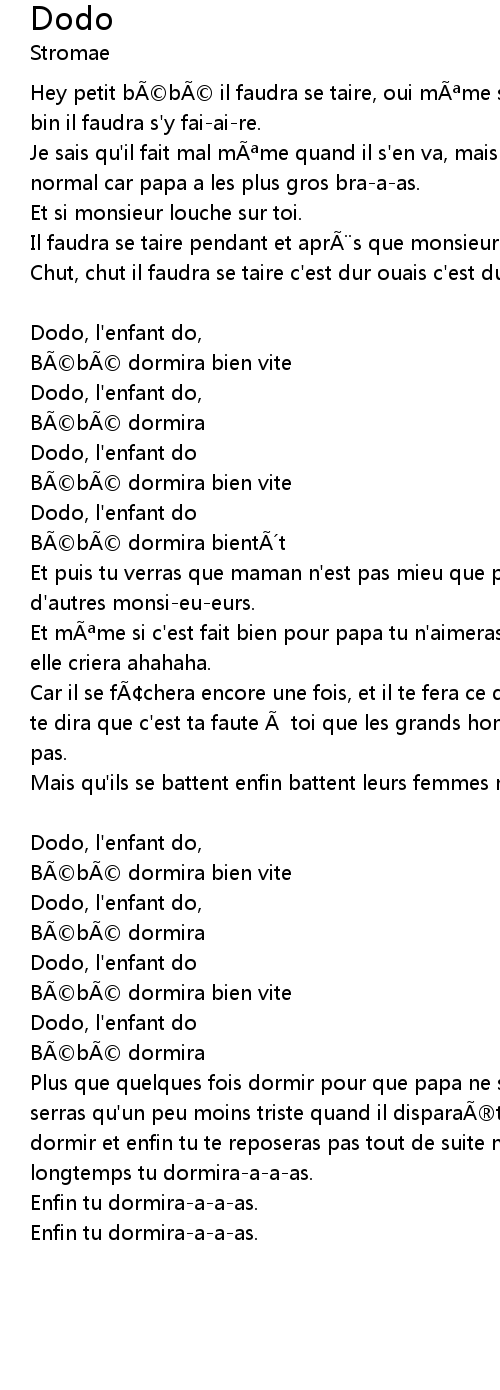 | Hey petit b b il faudra se taire, oui m me si papa frappe ta m re, bin il faudra s' y faiaire. | |