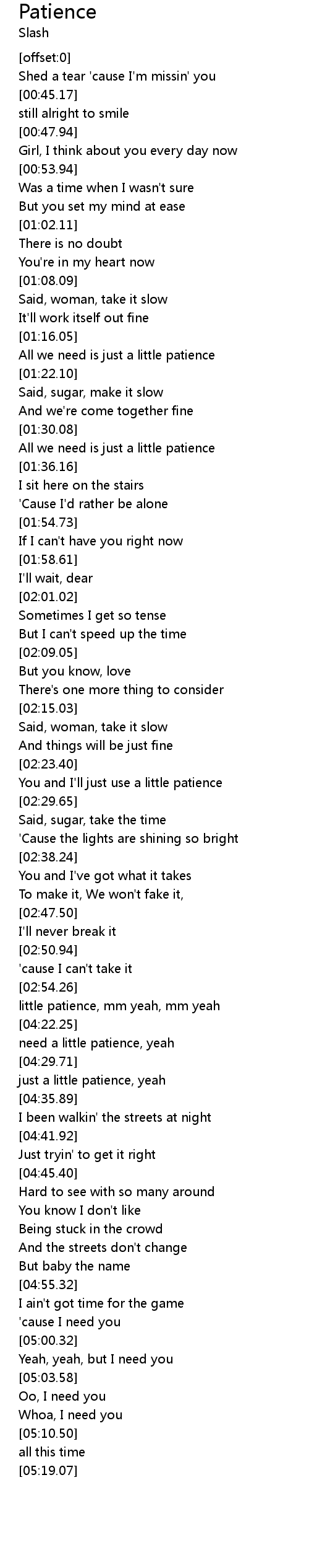 Patience 歌词