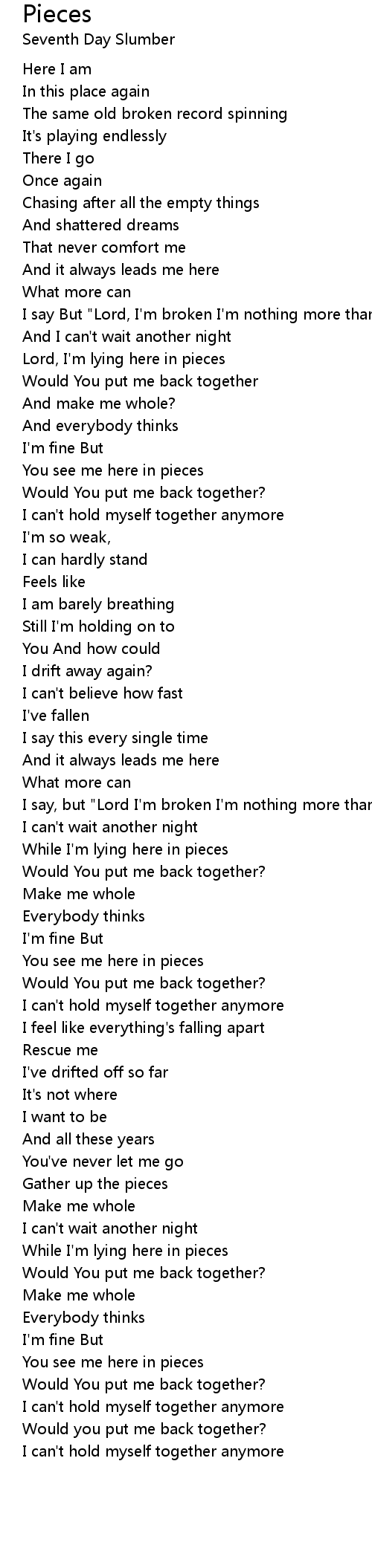 Lord, I'm lying here in pieces