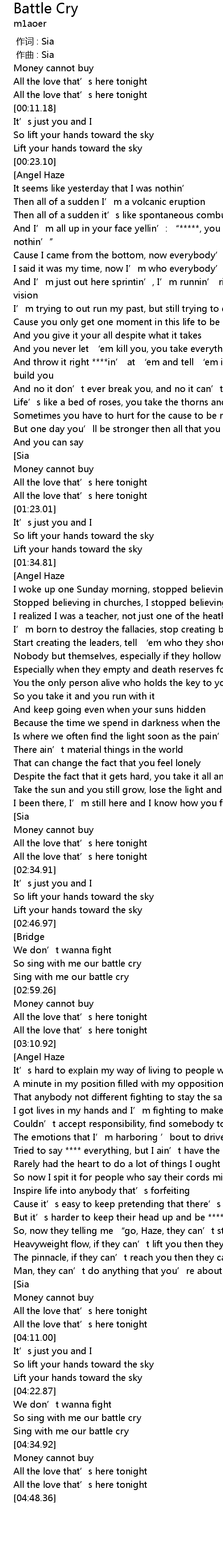 歌曲 Battle Cry