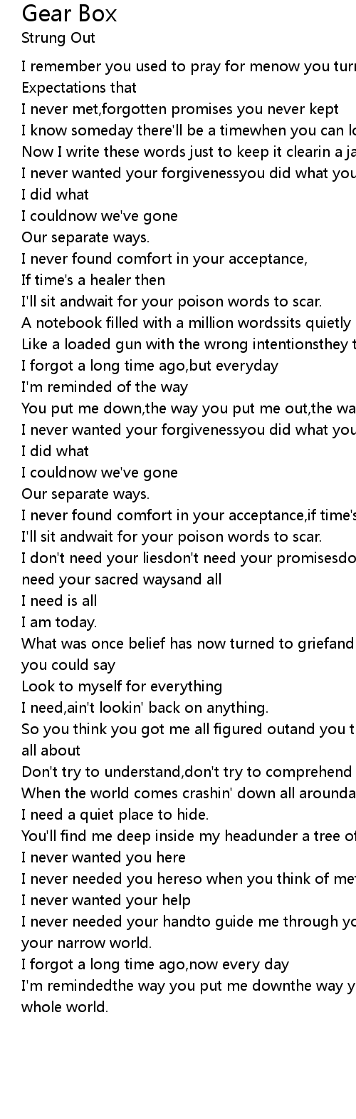 Now I write these words just to keep it clearin a jaded song you won't ever hear |