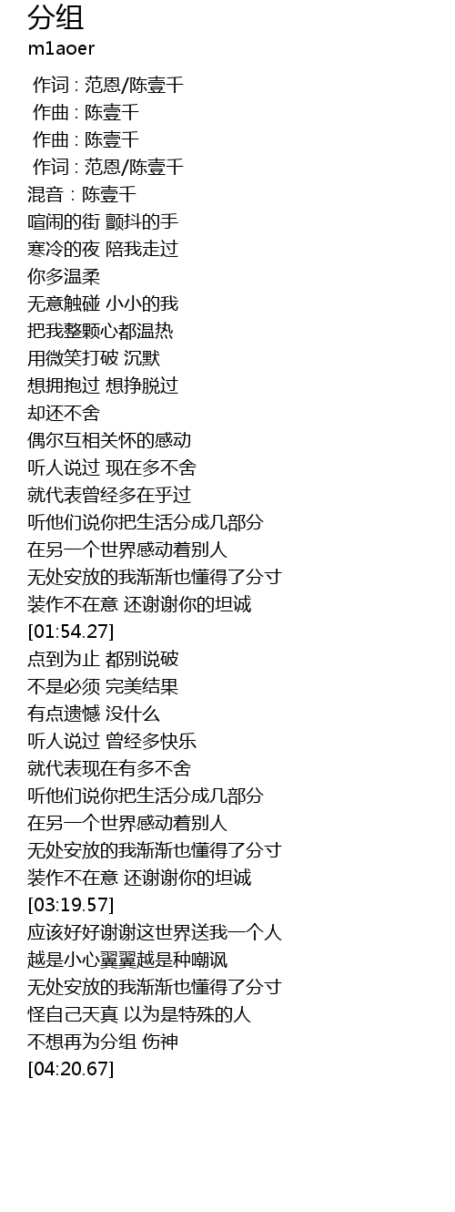 | [00:01.000] | 作词 : 范恩/陈壹千 |