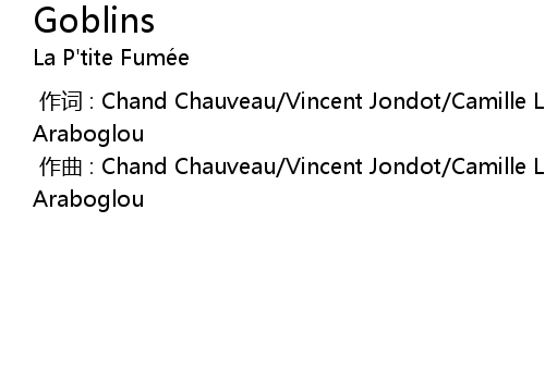 | [00:00.00-1] | 作曲 : Chand Chauveau/Vincent Jondot/Camille Leclercq/Christophe Araboglou |