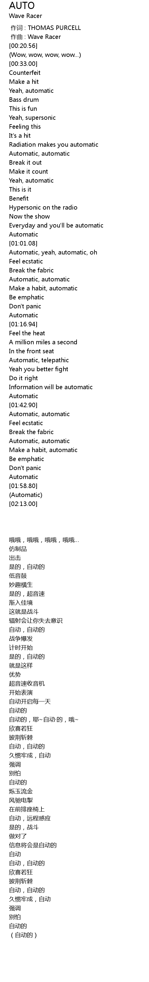 | [01:02.87] | 自动的,耶~自动·的,哦~ |