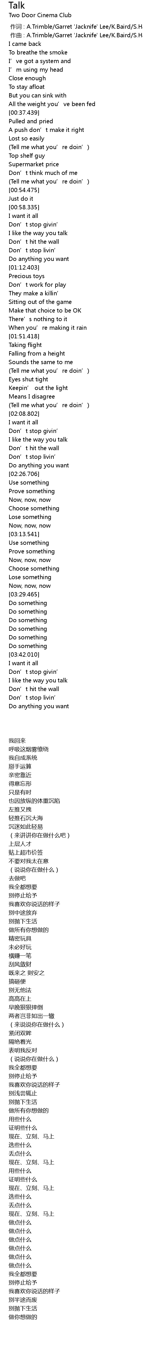 | 歌曲 | Talk |
