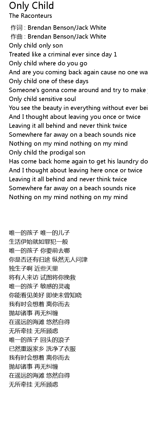 | 歌曲 | Only Child |