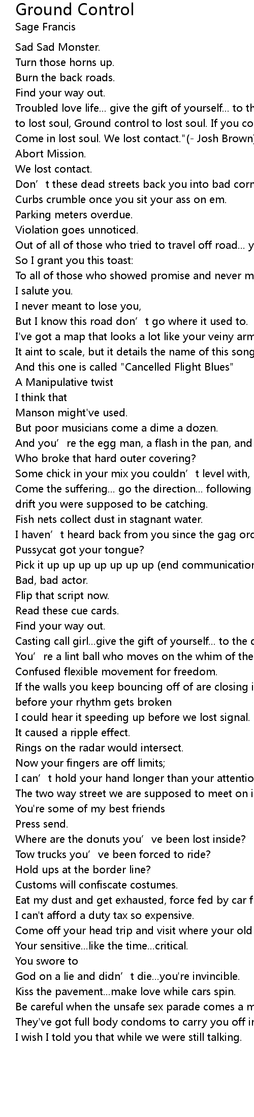 | Troubled love life... give the gift of yourself... to the dark " Ground control to lost soul, Ground control to lost soul. If you copy... come in lost soul. Come in lost soul. We lost contact." Josh Brown | |