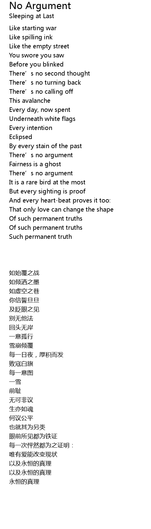 | 歌曲 | No Argument |
