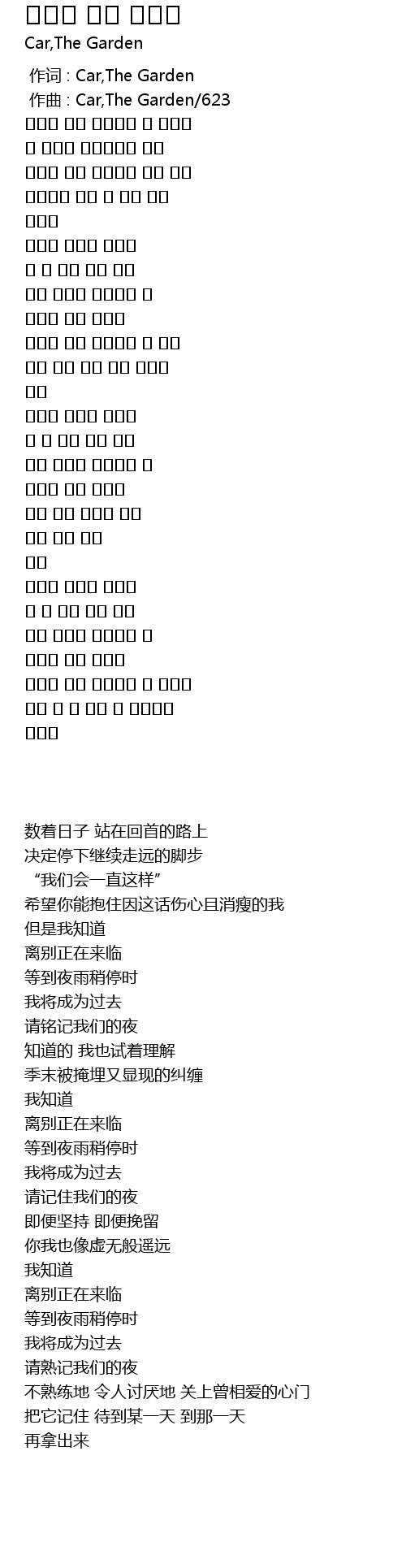 | [00:00.250] | zuo qu : Car, The Garden 623 |