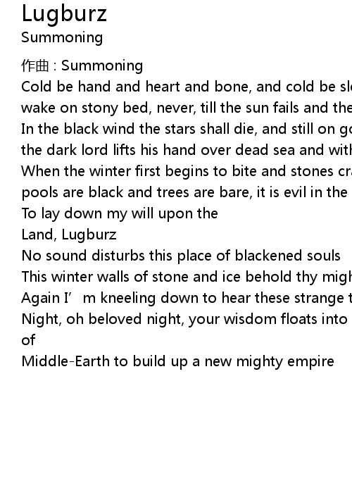 | In the black wind the stars shall die, and still on gold here let them lie, till the dark lord lifts his hand over dead sea and withered land | |
