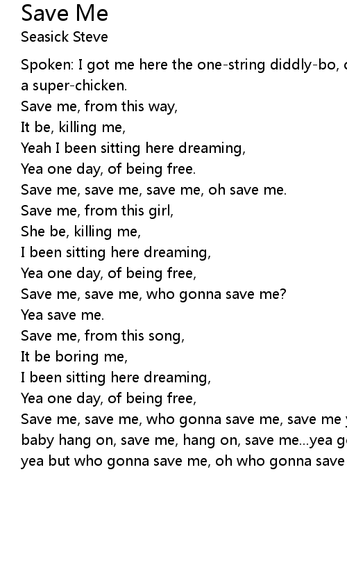 Save me, save me, who gonna save me, save me yea, save me, who gonna save me, baby hang on, save me, hang on, save me...yea gonna save me, who gonna save me, yea but who gonna save me, oh who gonna save me...diddly-bo |