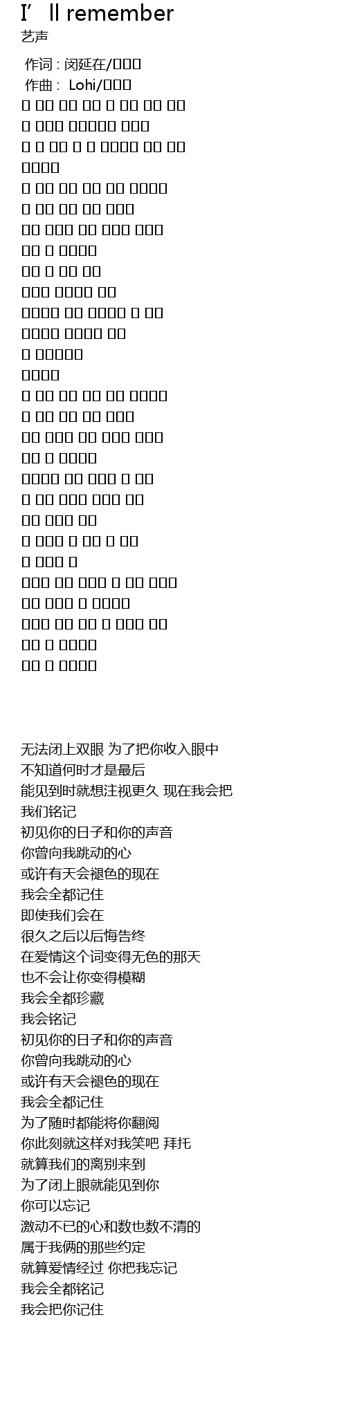 我会全都记住 |