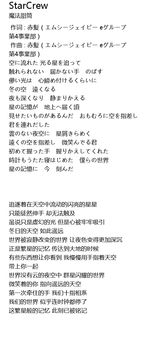 | [01:44.665] | 星の記憶に 今 刻んだ |