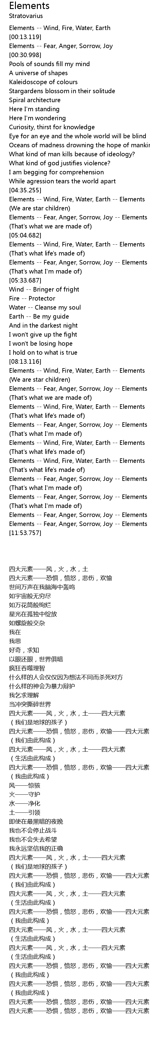 Elements -- Fear, Anger, Sorrow, Joy -- Elements |