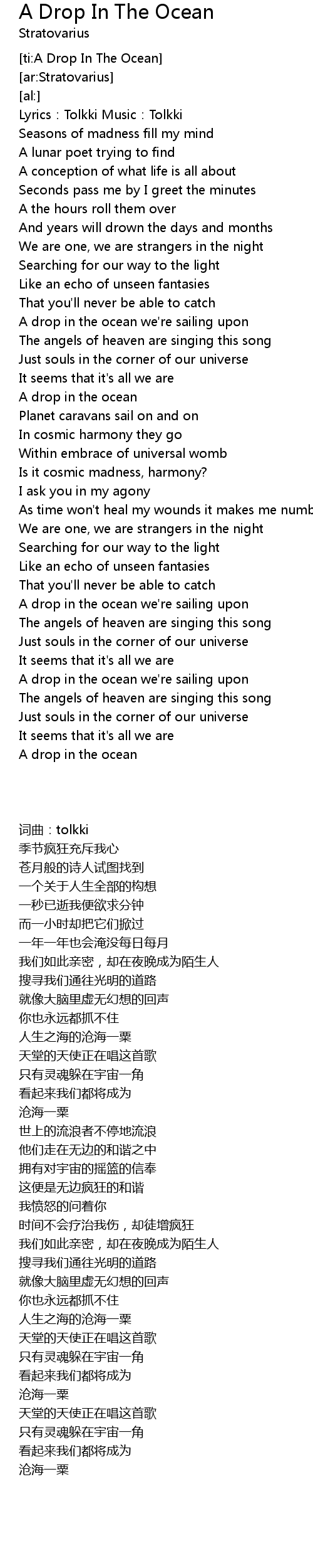 | [02:58.81] | A drop in the ocean we' re sailing upon |