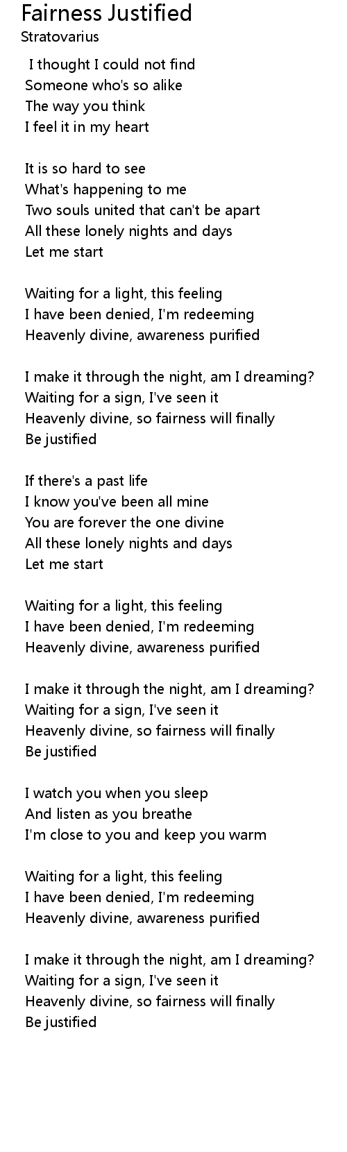 Fairness Justified 歌词