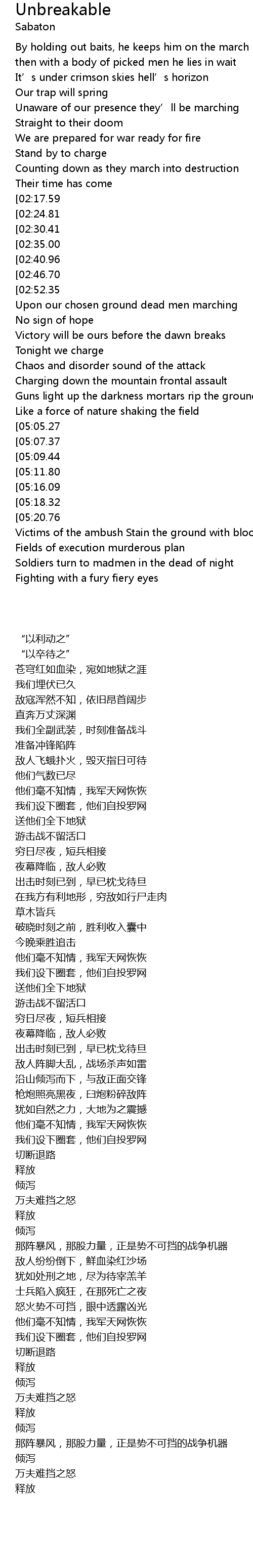 | [02:02.44] | 在我方有利地形,穷敌如行尸走肉 |