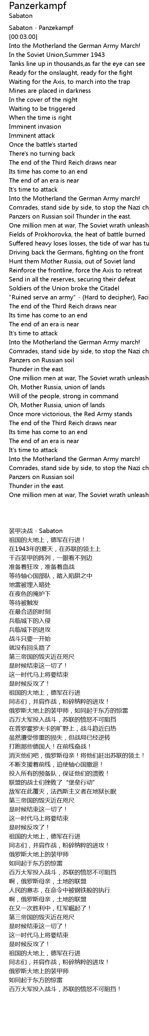 Sabaton - Panzekampf |