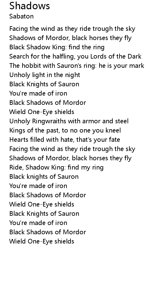 | Shadows of Mordor, black horses they fly | |