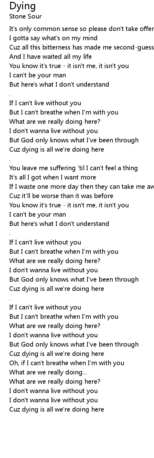 Cuz dying is all we're doing here |