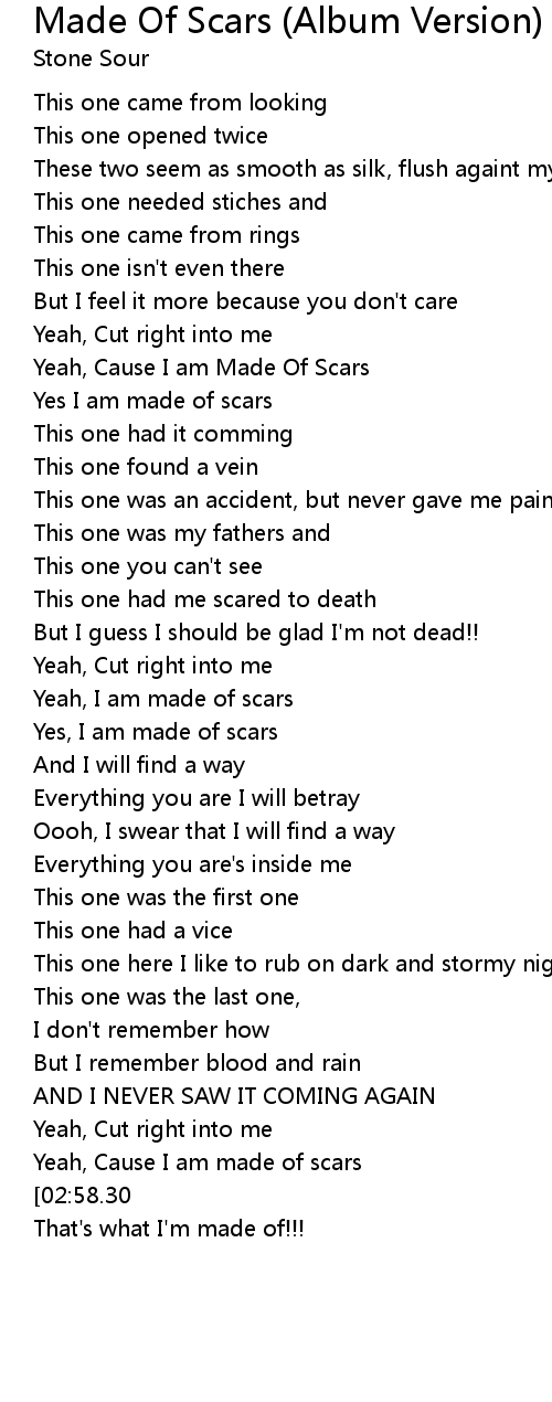 Yes I am made of scars |