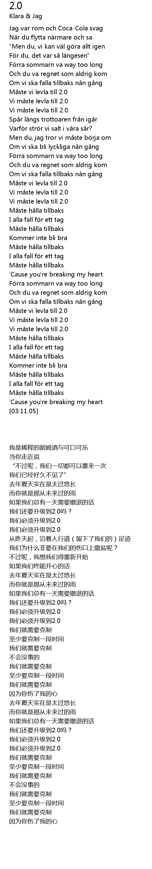 | [02:00.15] | Vi m ste levla till 2. 0 |