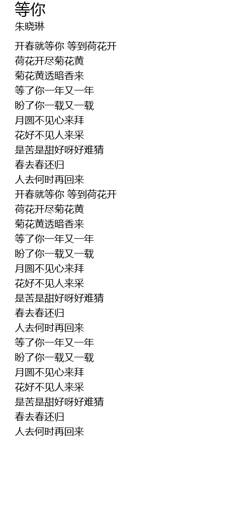 | [00:21.330] | 开春就等你 等到荷花开 |