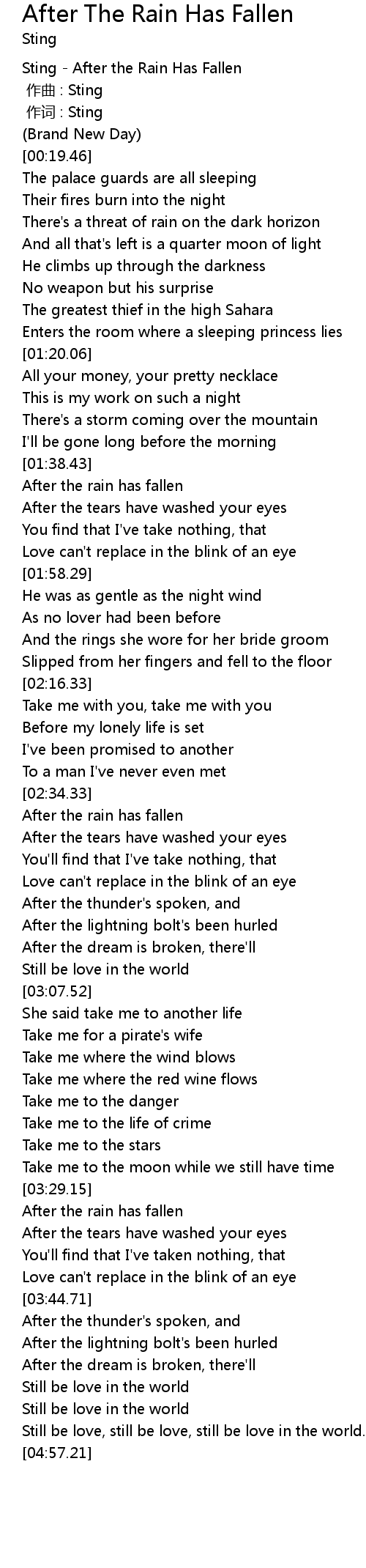 | [03:29.71] | After the rain has fallen |