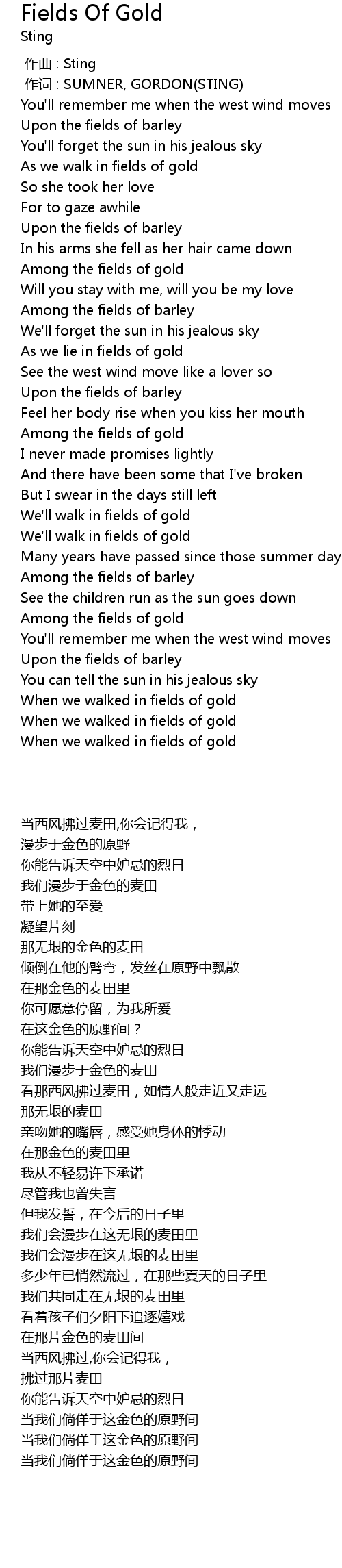 | [00:01.00] | 作词 : SUMNER, GORDON(STING) |