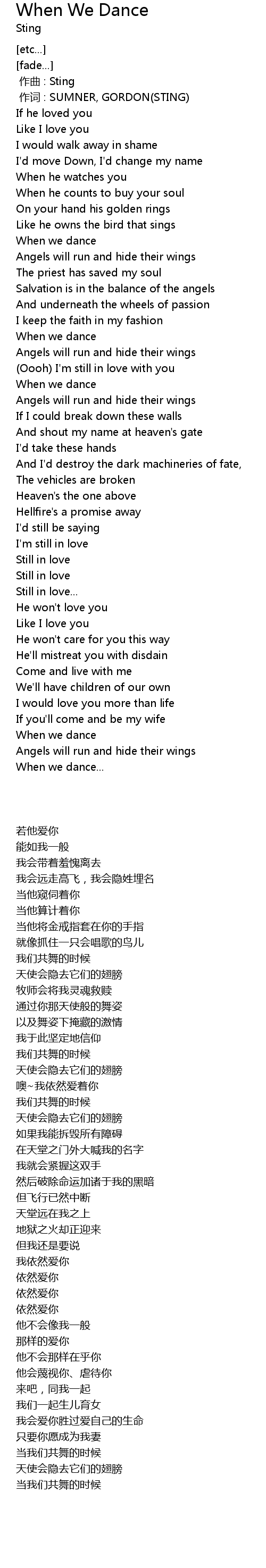 | [00:01.00] | zuò cí : SUMNER, GORDON STING |