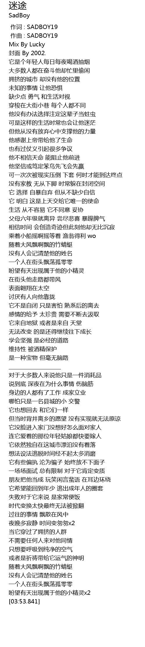 | [00:00.000] | 作词 : SADBOY19 |