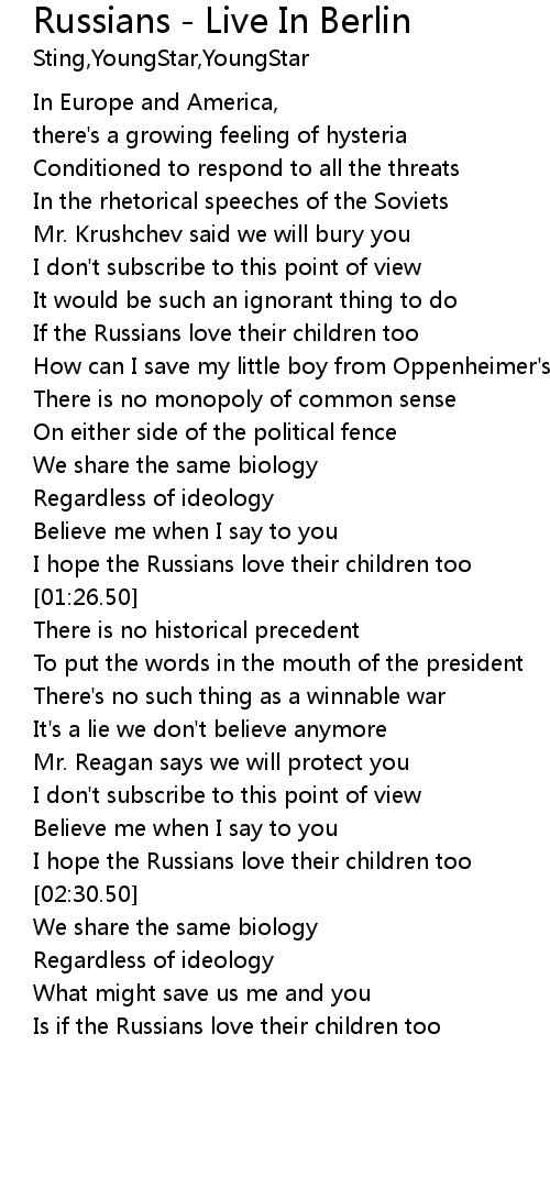 | [01:16.50] | I hope the Russians love their children too |