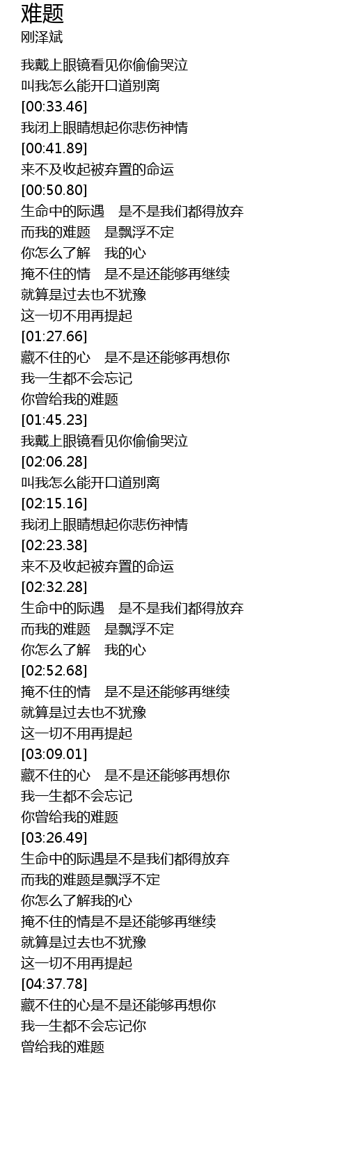 | [04:51.00] | 曾给我的难题 |