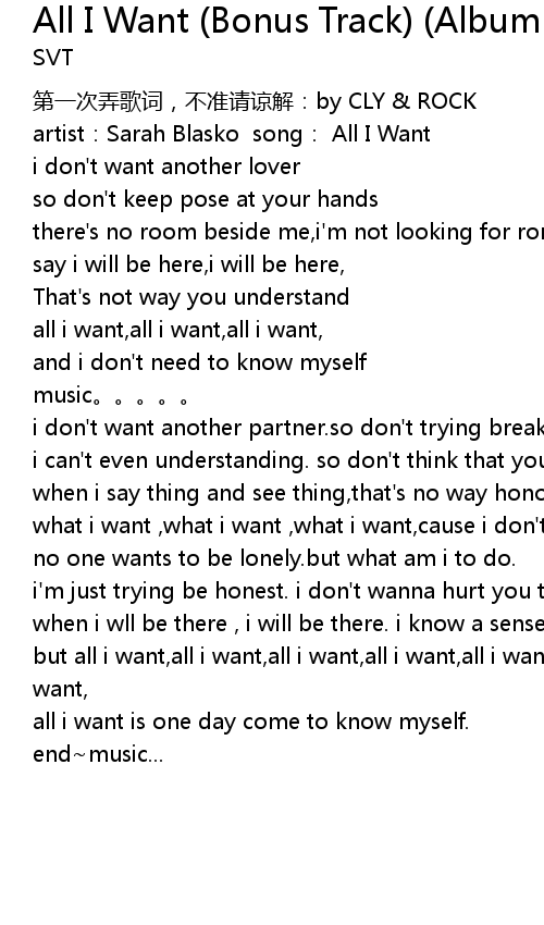 | 歌曲 | All I Want (Bonus Track) (Album Version) |