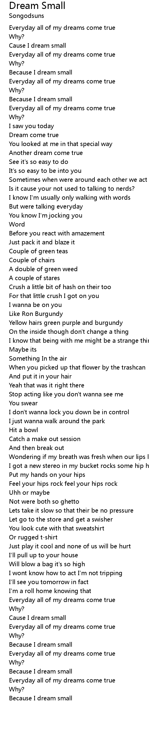 Cause I dream small |
