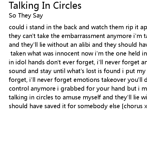 could i stand in the back and watch them rip it apart will they ask and ask till they can't take the embarrassment anymore i'm talking in circles to amuse myself and they'll lie without an alibi and they should have saved it for somebody else [chorus] taken what was innocent now i'm the one held in contempt i put my life in idol hands don't ever forget, i'll never forget and i'll try not to make a sound and stay until what's lost is found i put my life in idol hands don't ever forget, i'll never forget emotions takeover you'll discover you're not in control anymore i grabbed for your hand but i meant to reach for the door i'm talking in circles to amuse myself and they'll lie with out an alibi, they should have saved it for somebody else [chorus x2] |