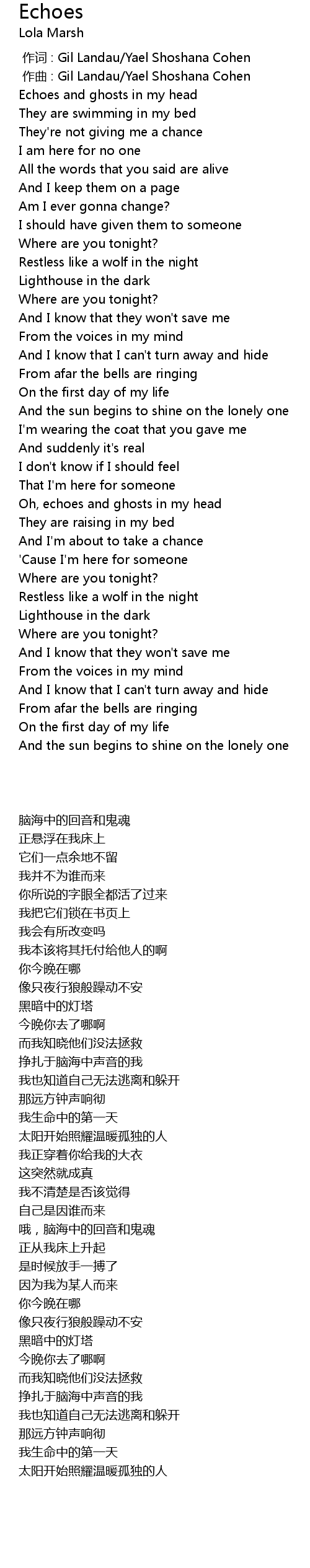 | [00:01.000] | zuo qu : Gil Landau Yael Shoshana Cohen |