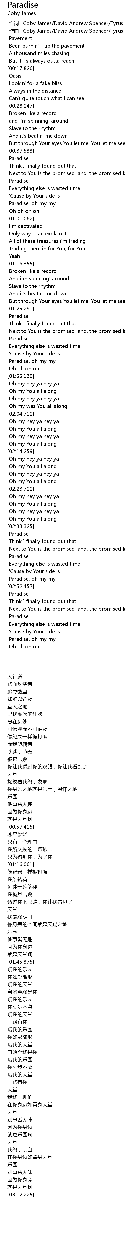 | [00:01.000] | zuo qu : Coby James David Andrew Spencer Tyrus Morgan |
