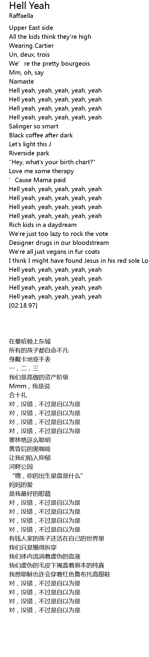 | [02:07.72] | Hell yeah, yeah, yeah, yeah, yeah |