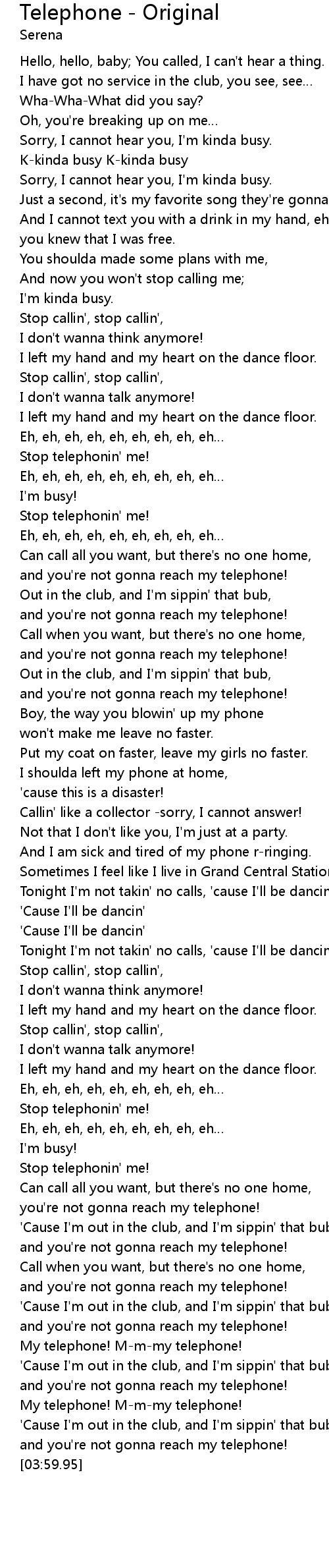 | [03:50.80] | My telephone! Mmmy telephone! |