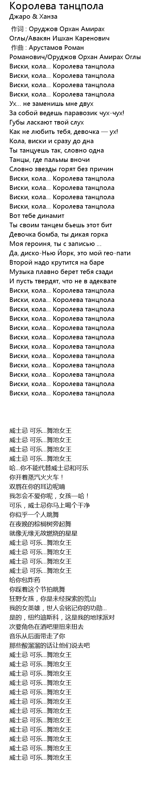 | [01:45.39] | Виски, кола… Королева танцпола |