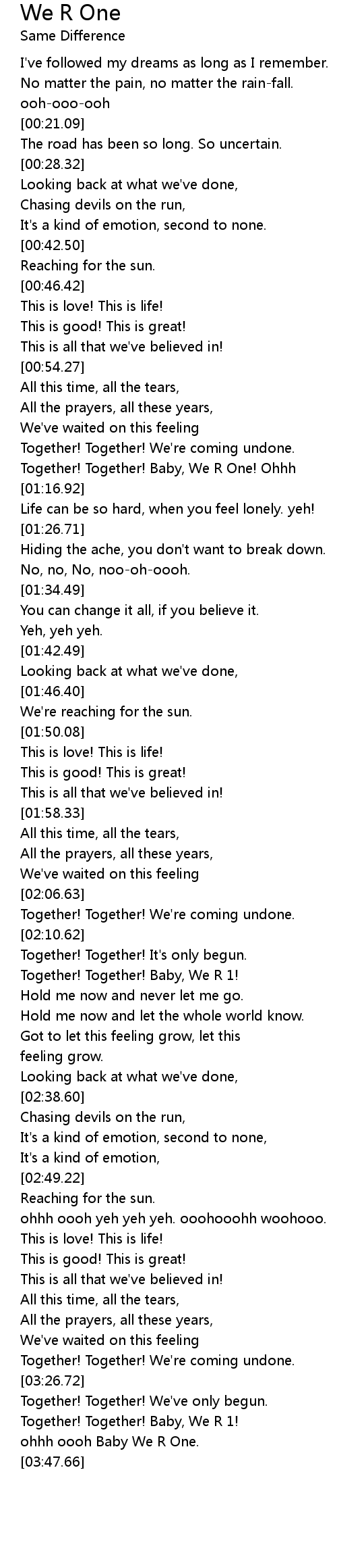Together! Together! Baby, We R One! Ohhh |