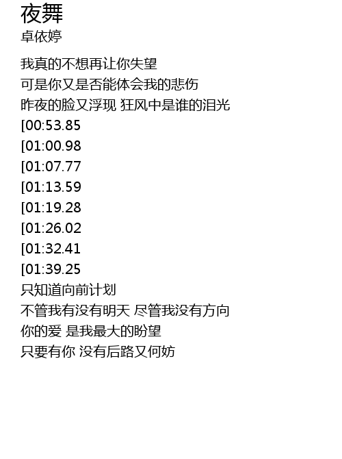| [03:03.95][01:39.25] | yè wǎn zhōng méi yǒu fāng xiàng |