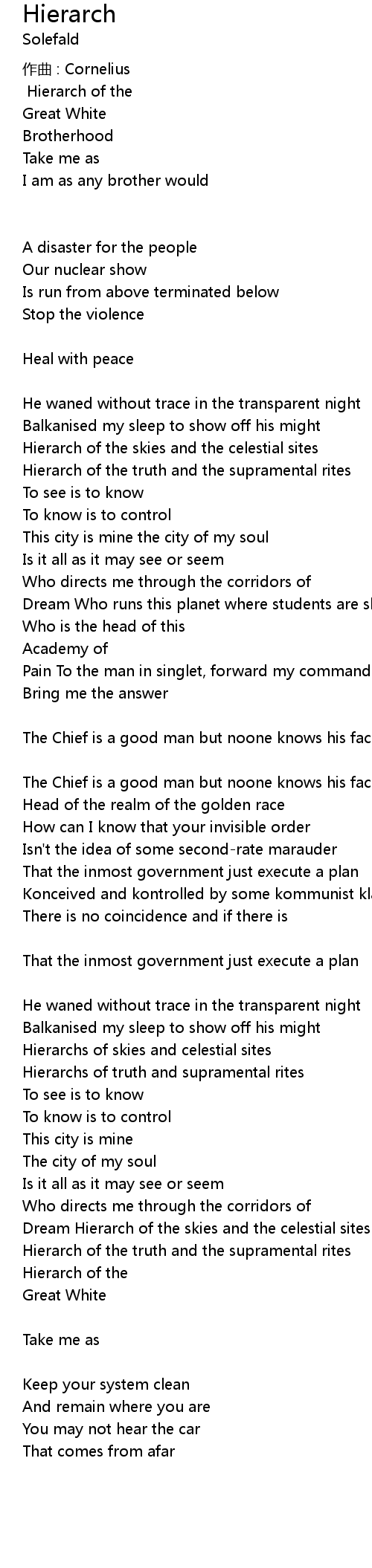 | 歌曲 | Hierarch |
