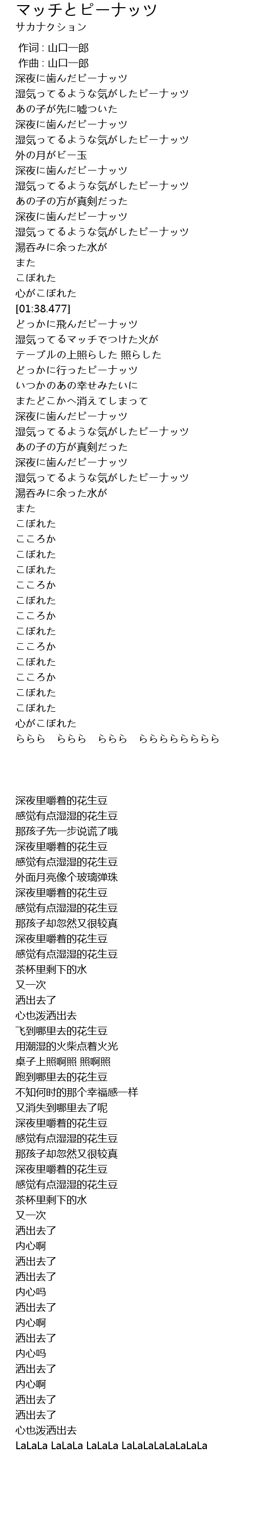 | [00:52.110] | 深夜に歯んだピーナッツ |