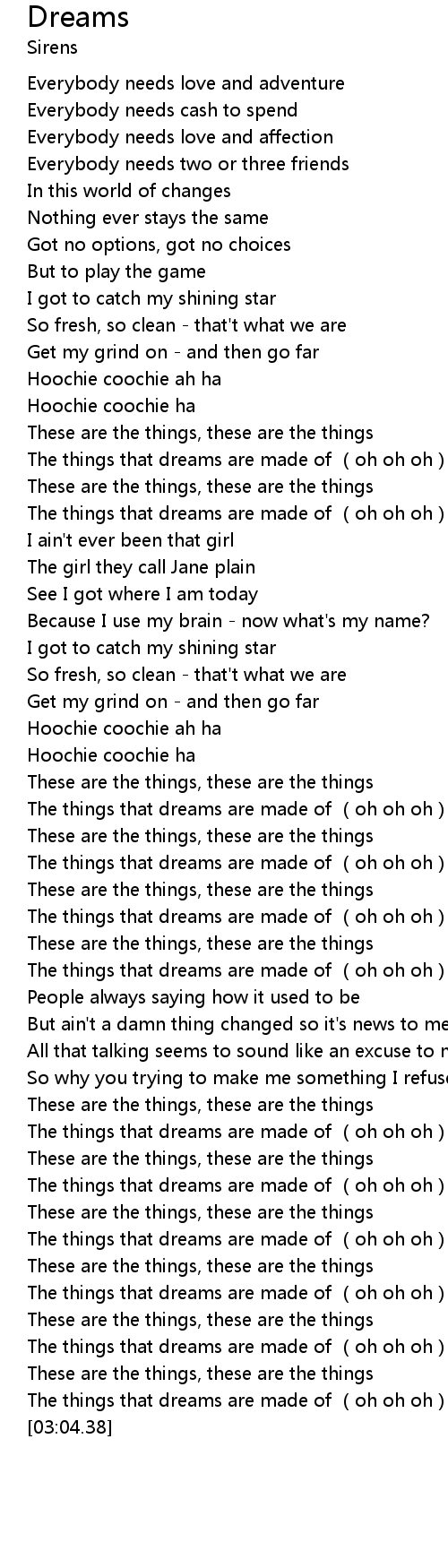 | [00:57.53] | The things that dreams are made of (oh oh oh) |