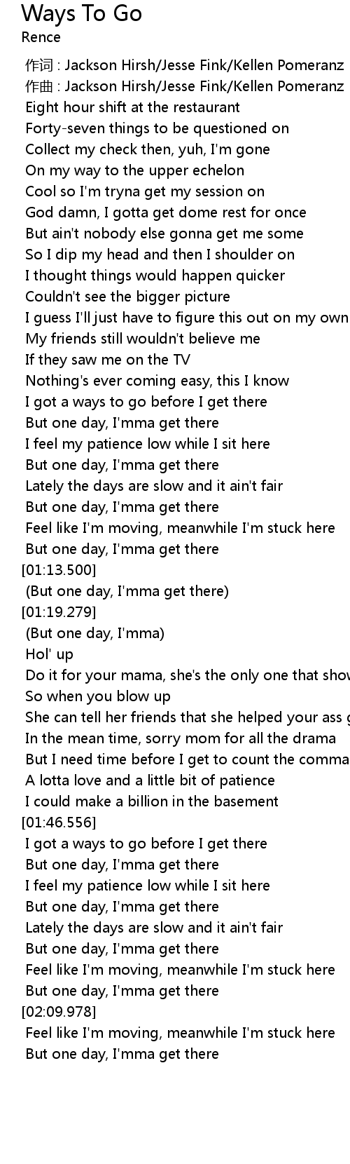 | [01:17.039] | (But one day, I'mma get there) |