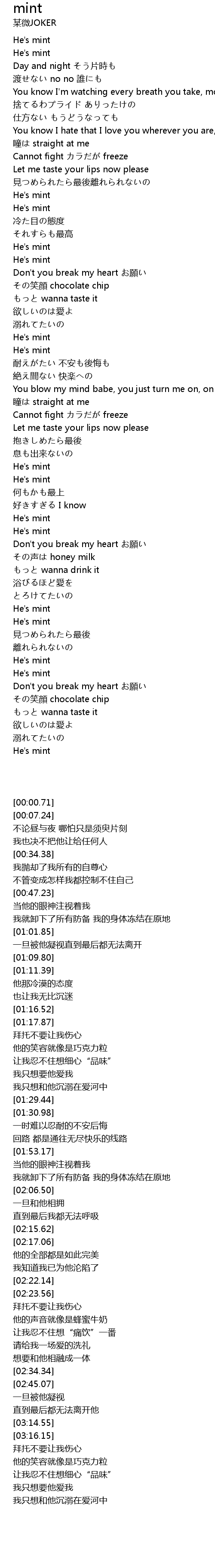 | [00:00.71] | He's mint |