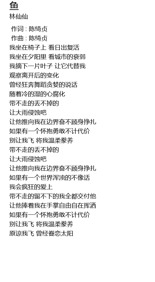 | [00:01.000] | 作曲 : 陈绮贞 |