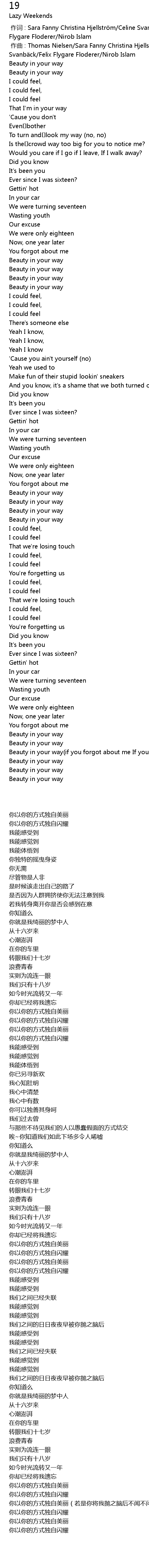 | 歌曲 | 19 |